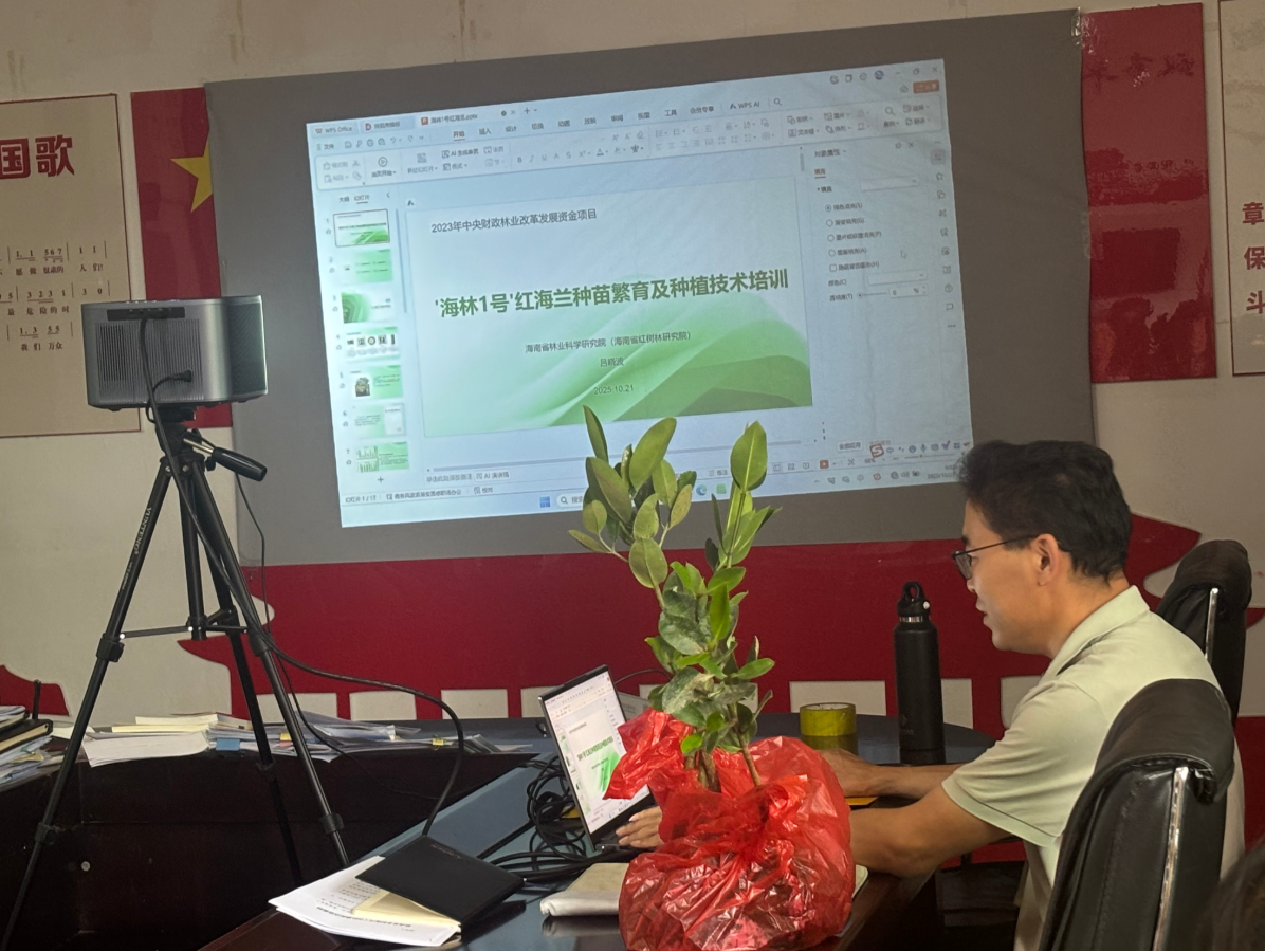 为提升我省红树林生态修复成效,加快“海林1号”红海兰与“海林1号”秋茄等林木良种的繁育与种植技术推广,我院于2025年10月21日在临高县博厚镇组织实施了两场专题培训,内容分别为2023年中央财政林业科技推广示范项目《“海林1号”红海兰种苗繁育及示范种植》与《“海林1号”秋茄种苗繁育及示范种植》。