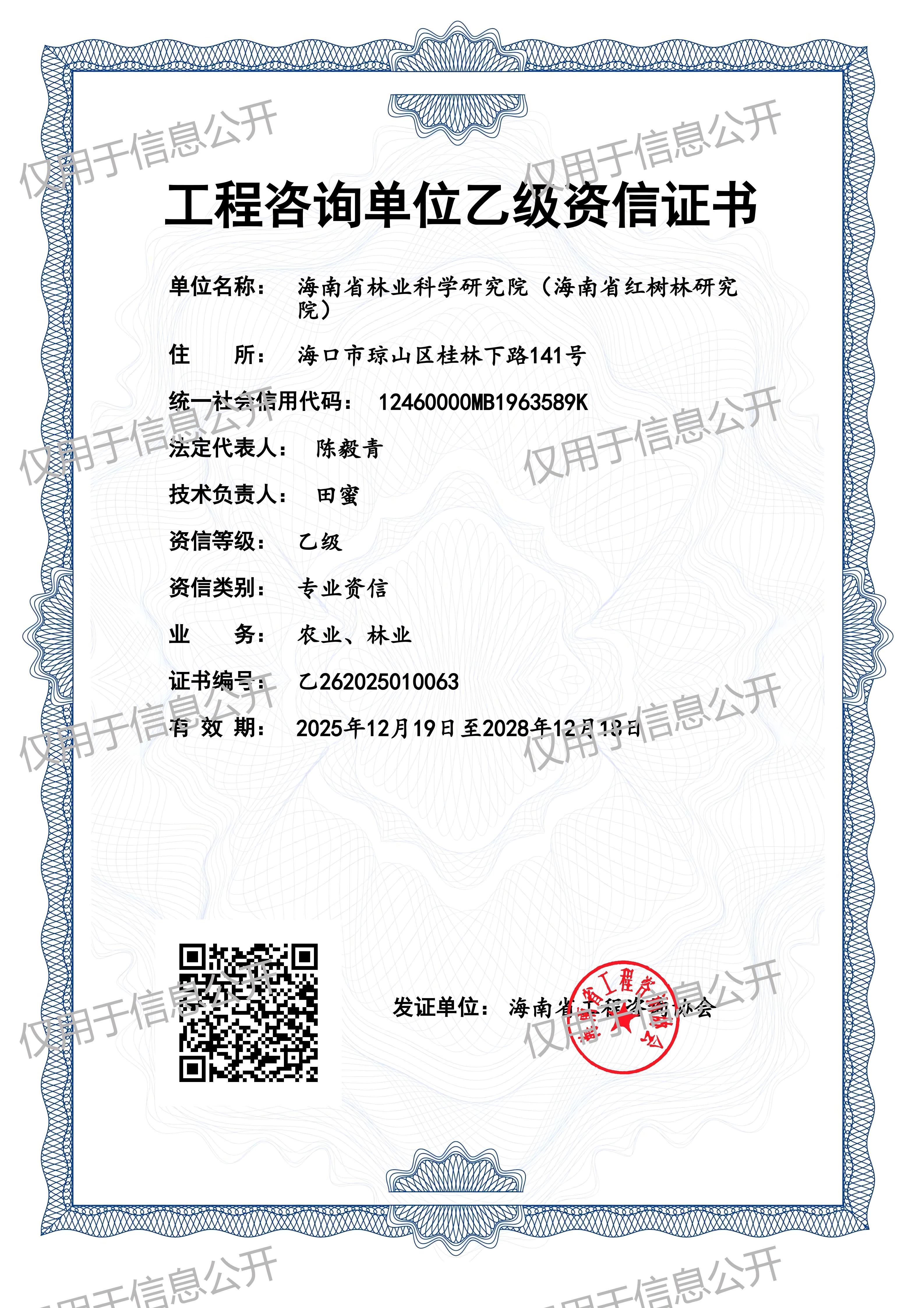 12月19日,海南省工程咨询协会发布公告公布2025年工程咨询单位乙级资信评价(含预评价)结果,我院成功取得工程咨询单位乙级资信证书。