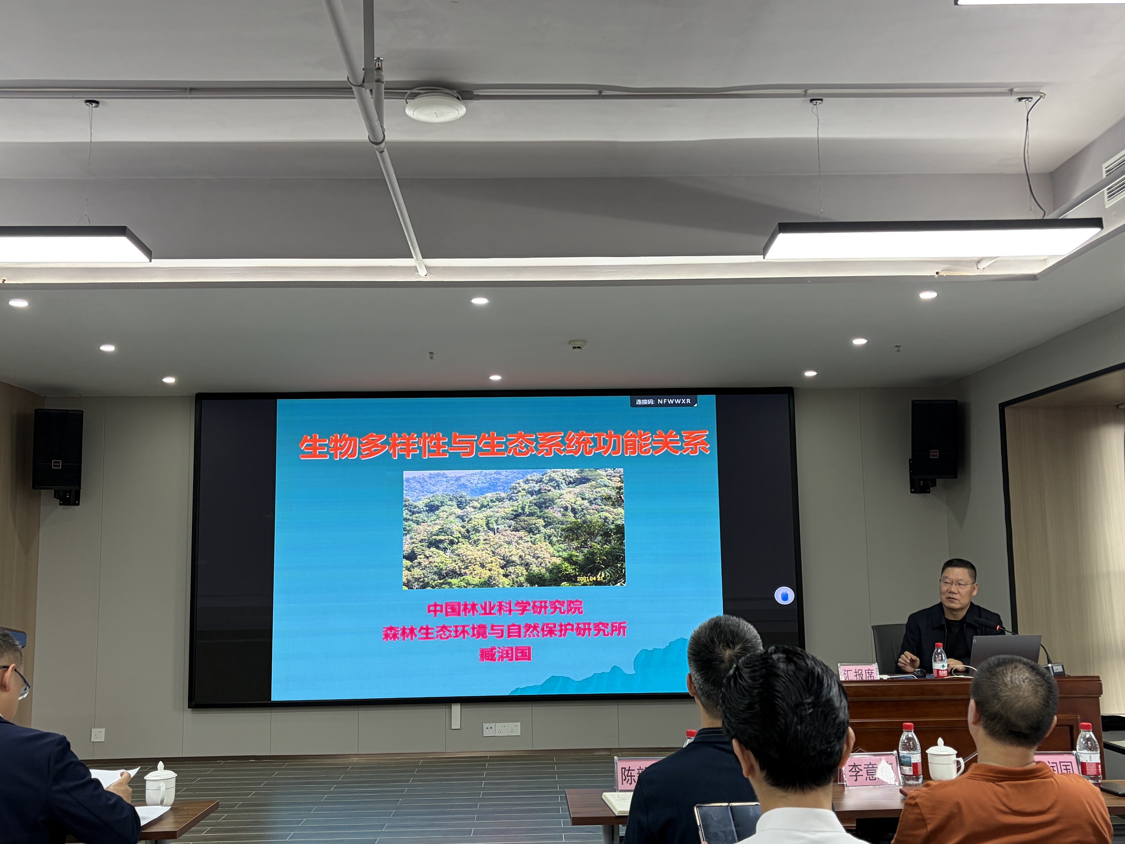 臧润国研究员以“生物多样性与生态系统功能关系研究进展”为题作专题报告。作为长期深耕海南热带天然林的权威专家,他系统阐述了生物多样性在科学研究中的拓展,深入揭示了生物多样性如何影响生态系统的生产力、稳定性及抗干扰能力等关键功能。
