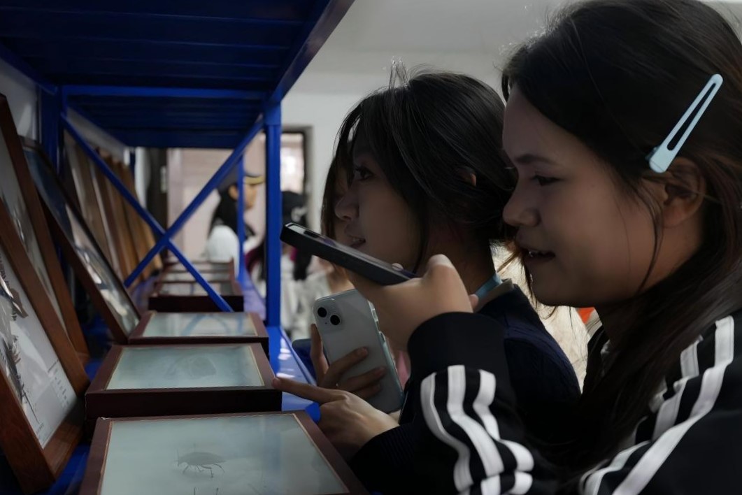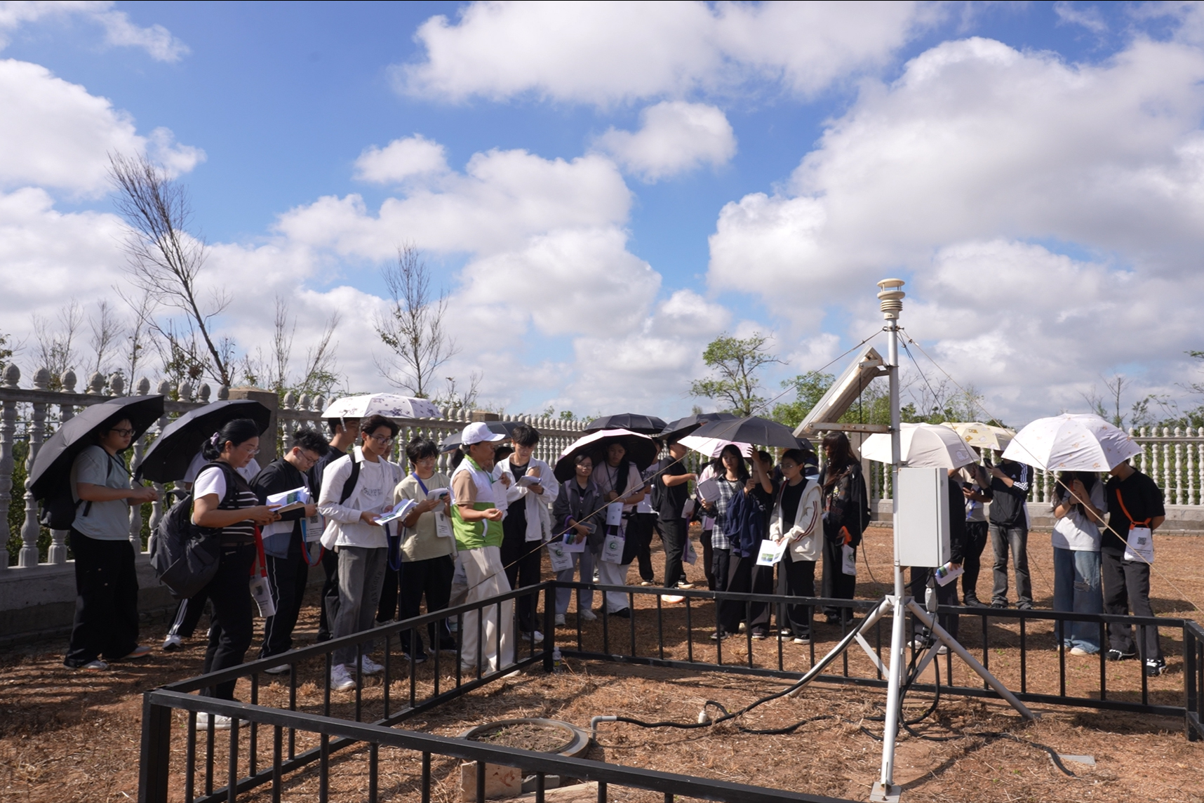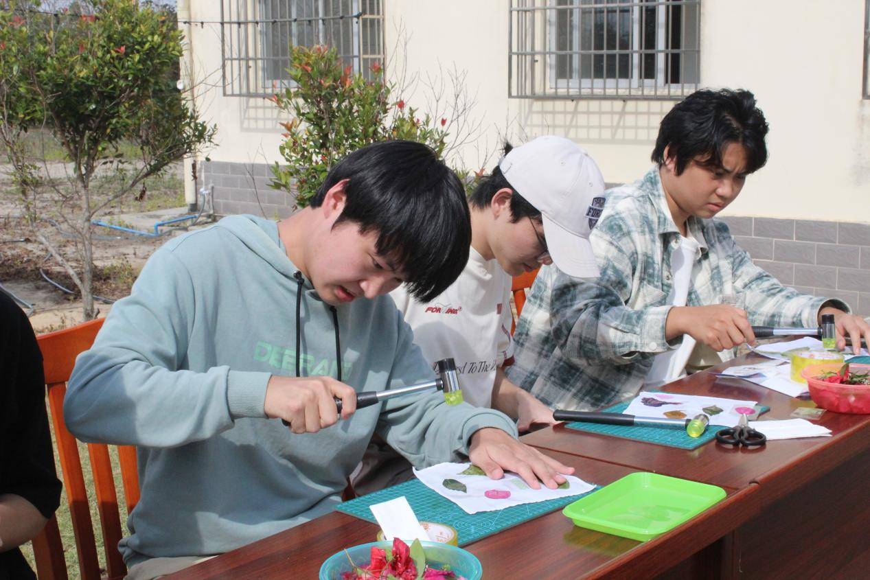 在海南文昌森林生态系统定位观测研究站,同学们解锁了生态监测的“科技密码”—工作人员详细介绍了综合观测塔、激光雨滴谱仪等专业设备的工作原理,讲解其在森林生态监测中的基础性作用。现场展示的珍稀动植物标本、木材及种子样本,让大家得以近距离触摸生物多样性的魅力。而人气颇高的叶脉书签制作与植物拓印等手工环节,让同学们在亲手创作中直观感受植物脉络的精巧与生命张力,将自然之美定格为随身记忆。
