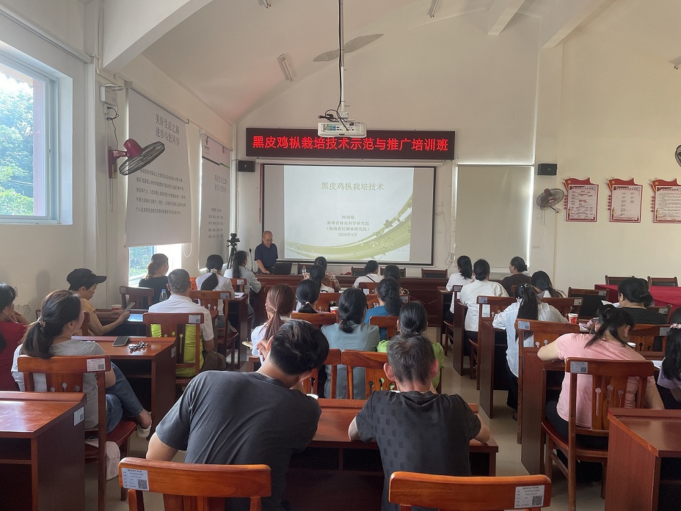 2026年3月27日,海南省林业科学研究院(海南省红树林研究院)五指山分院依托中央财政林业科技推广示范资金项目“黑皮鸡枞栽培技术示范与推广”,在五指山市通什镇应示村委会应示村举办黑皮鸡枞栽培技术专题培训班。本次培训班由林业高级工程师钟剑锋主讲,为50余名林农开展现场授课,推动林业科技成果精准下沉、落地见效,切实把科技优势转化为惠民实效,助力乡村振兴。